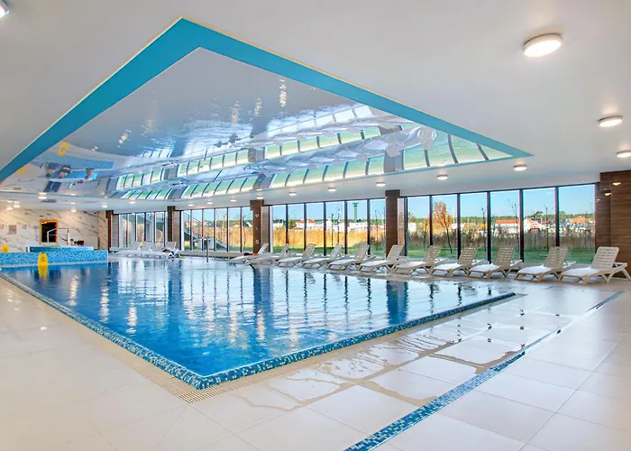 Jantar Porta Mare Apartament位于Dziwnów,距离Kamieński Lagoon泻湖2.9公里。公寓内设有健身课程 和水疗,是个人或全家居住的首选。 住所设有室内游泳池,客人可以在小厨房做饭。